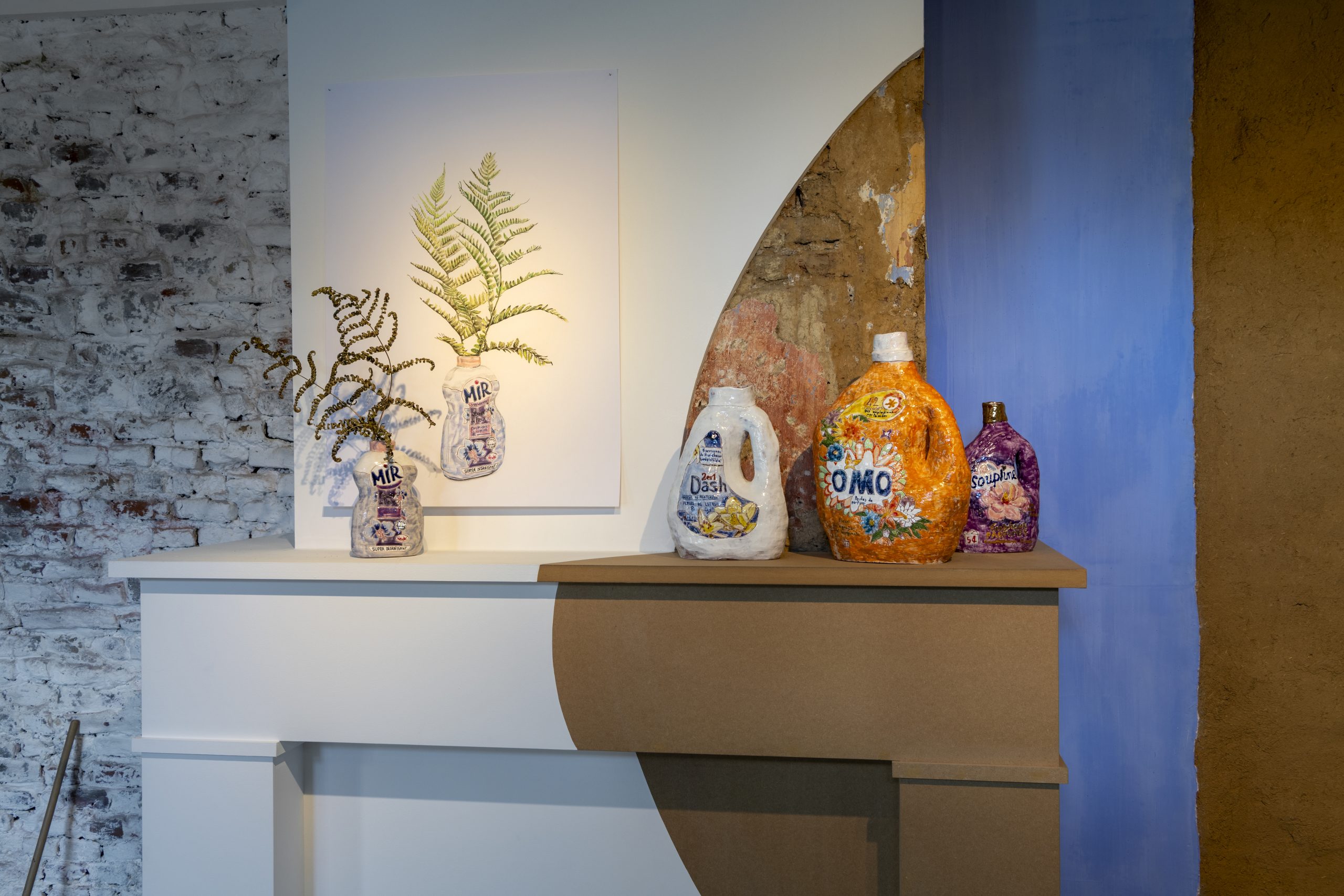 Suzanne Husky, OMO, Dash et Soupline, série « Douceurs de fleurs », faïence émaillée, 2018 © Suzanne Husky