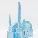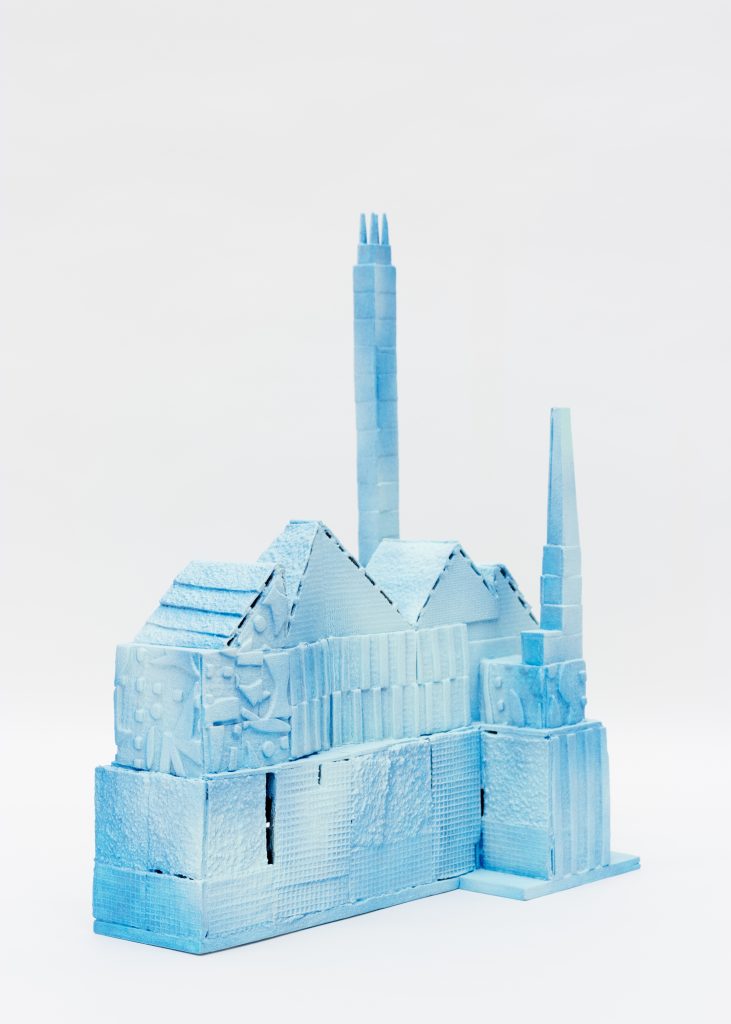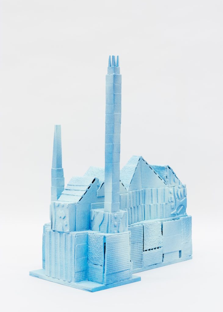 There are nearly a hundred of these colorful miniature multi-builds, created by Michael Madrigali using a variety of materials, including painted cardboard. The buildings presented here draw inspiration from video games, animation, and the artist’s personal memories, echoing his paintings, which feature fragments of urban environments. It is the change of scale that dictates our position in relation to these works, which are a kind of false model of buildings that are both familiar and invented. Faced with these meticulously sculpted architectures, we suddenly have the opportunity to project fictions and personal stories, becoming architects, directors, or all-powerful divine figures ourselves.