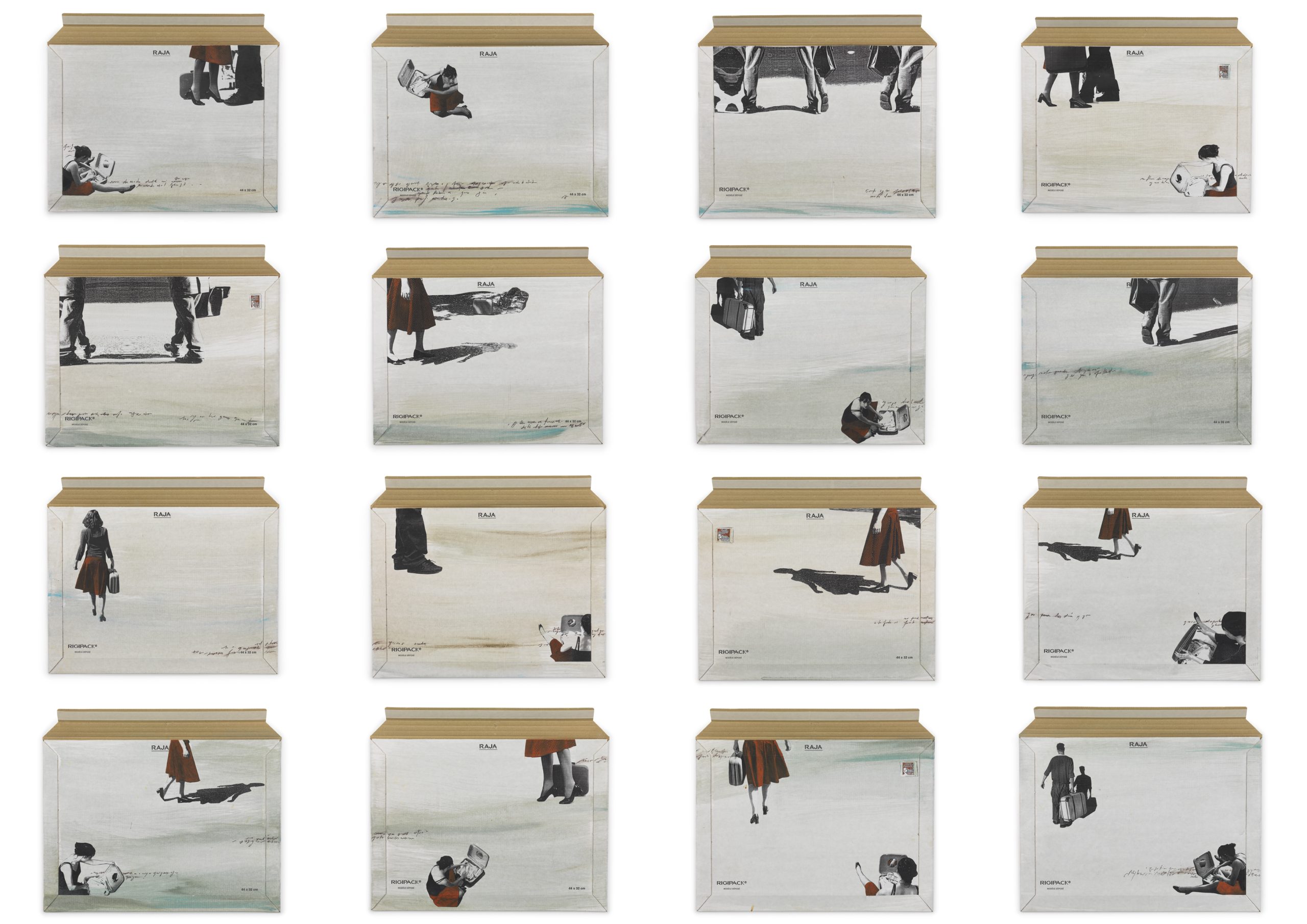 Ensemble de 16 enveloppes RIGIPACK avec peinture et collage de photocopies